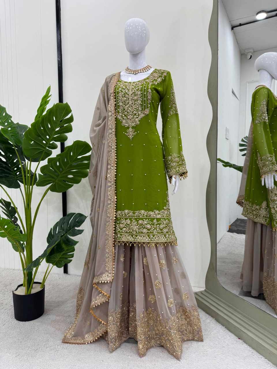 KD 1486 Green Faux Georgette with inner Beautiful Designer Suit has been successfully added to your cart .