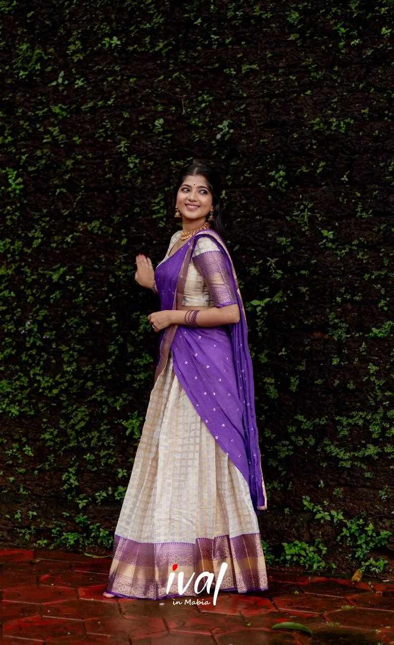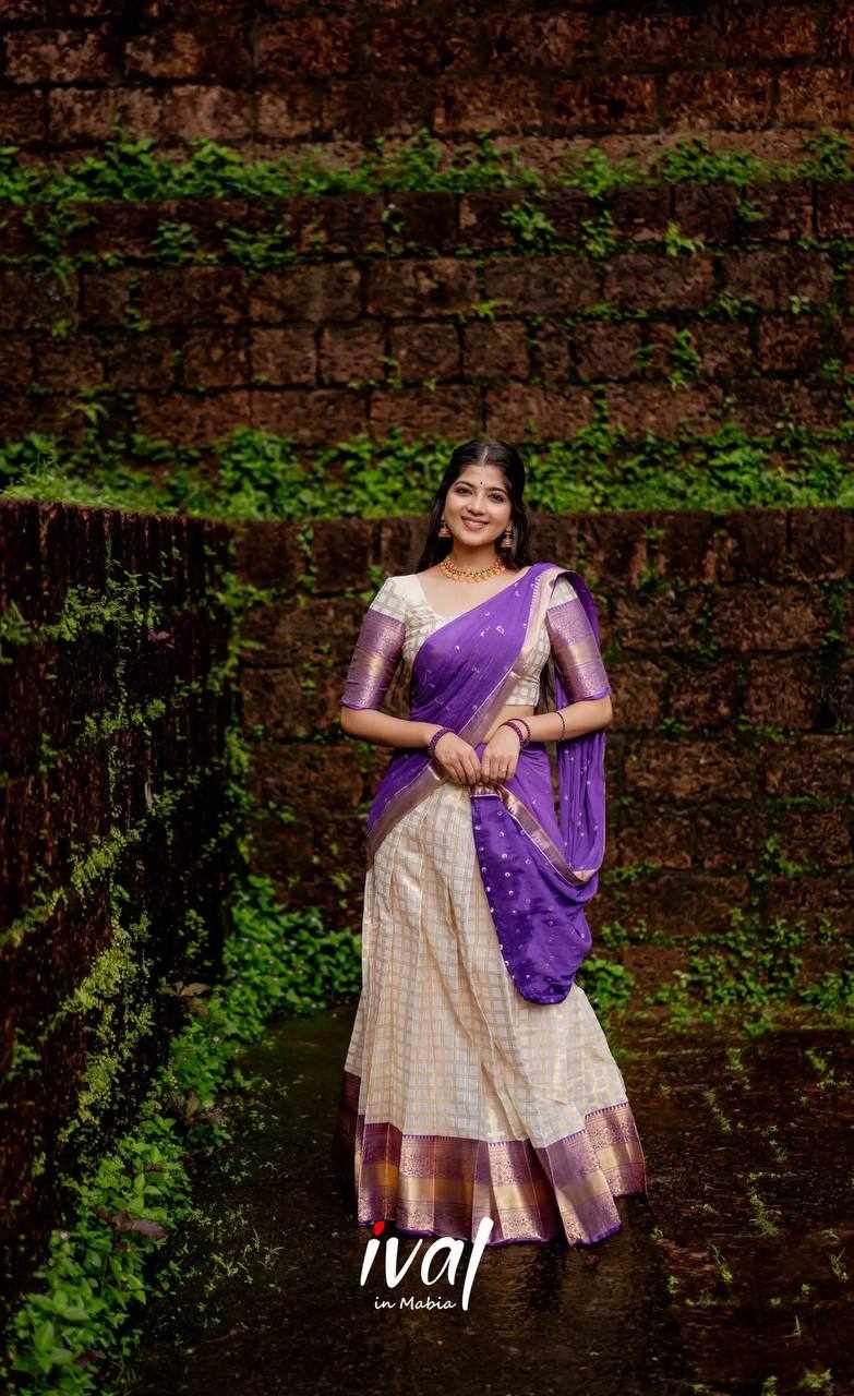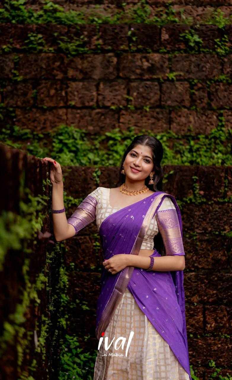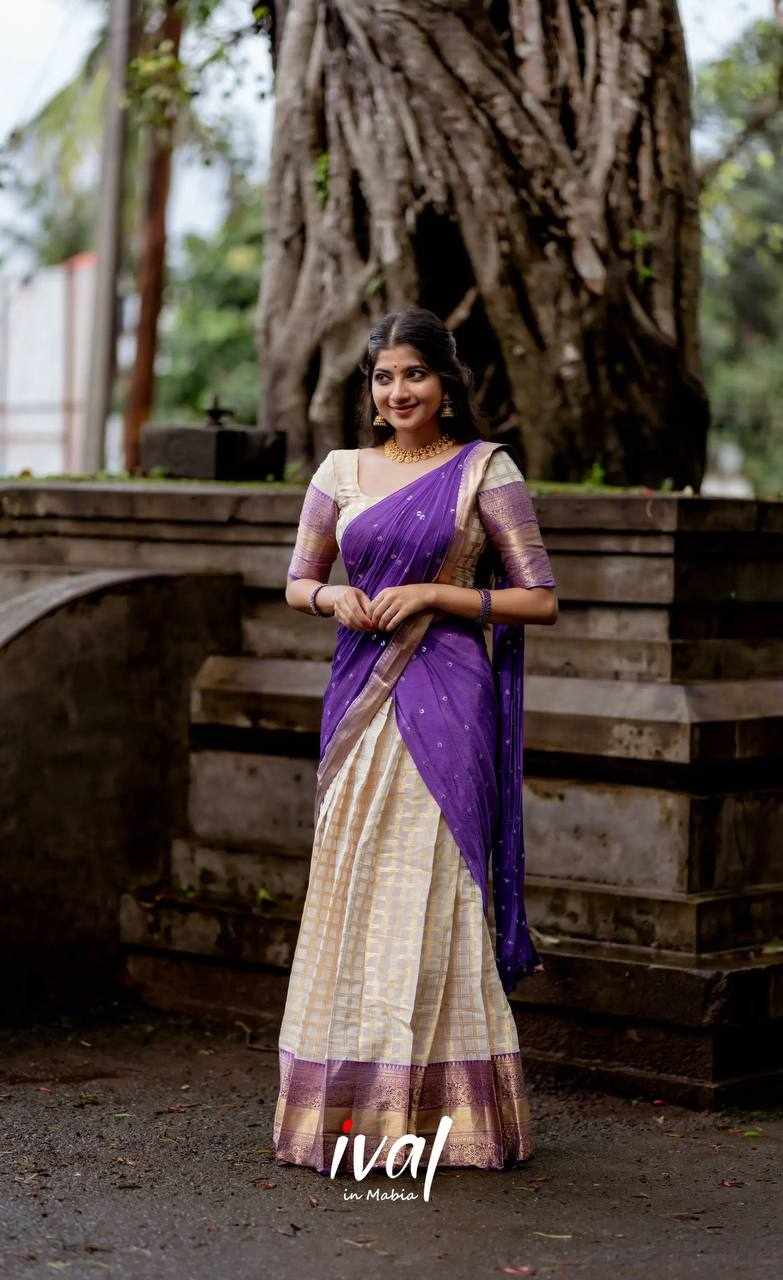 KP-W 352 Kanjiveram Silk Purple Colour Half Saree