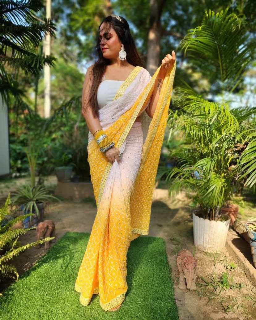 FABRIC: Heavy Fox Georgette With Pedding Print And 7.MM Sequence + Multi Work In Allover Saree