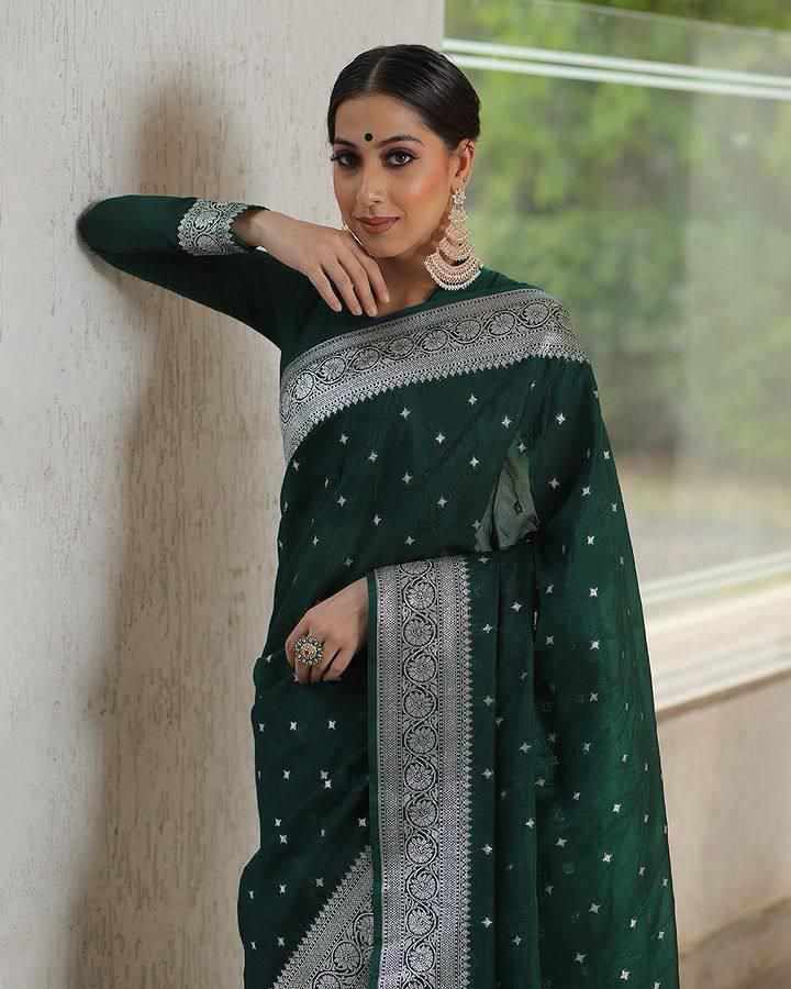 | Name : | MF 1680 GREEN BANARASI SOFT LICHI SILK SAREE |