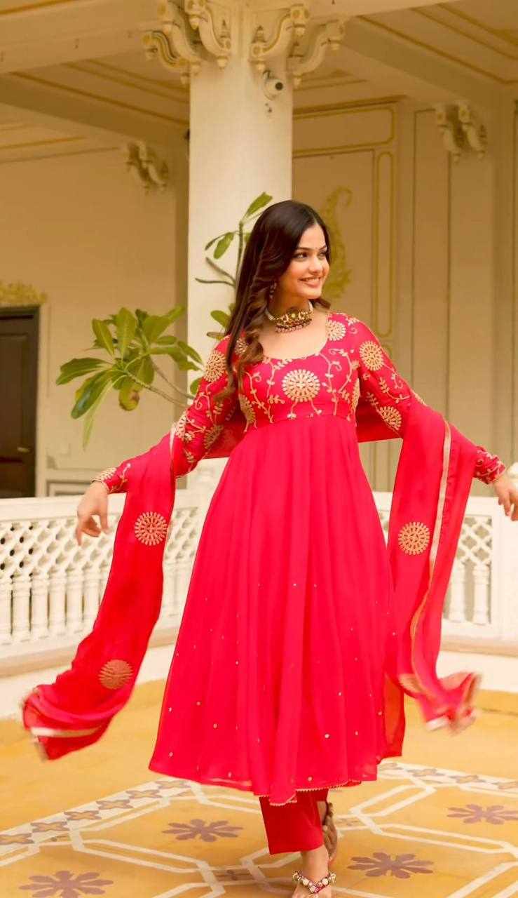 | Name : | PC 392 Red Embroidered Gown |