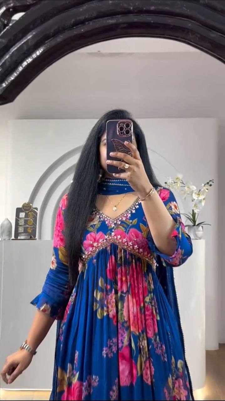 Work: Embroidery Thread Work & Floral Print