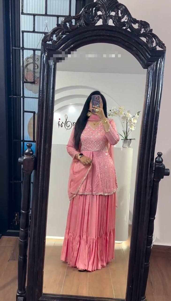 | Name : | Pc 434 Pink Chinon Sequence Work Lehenga |