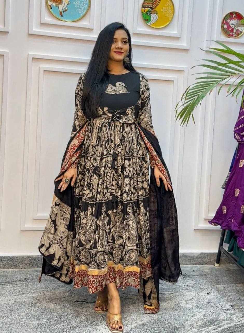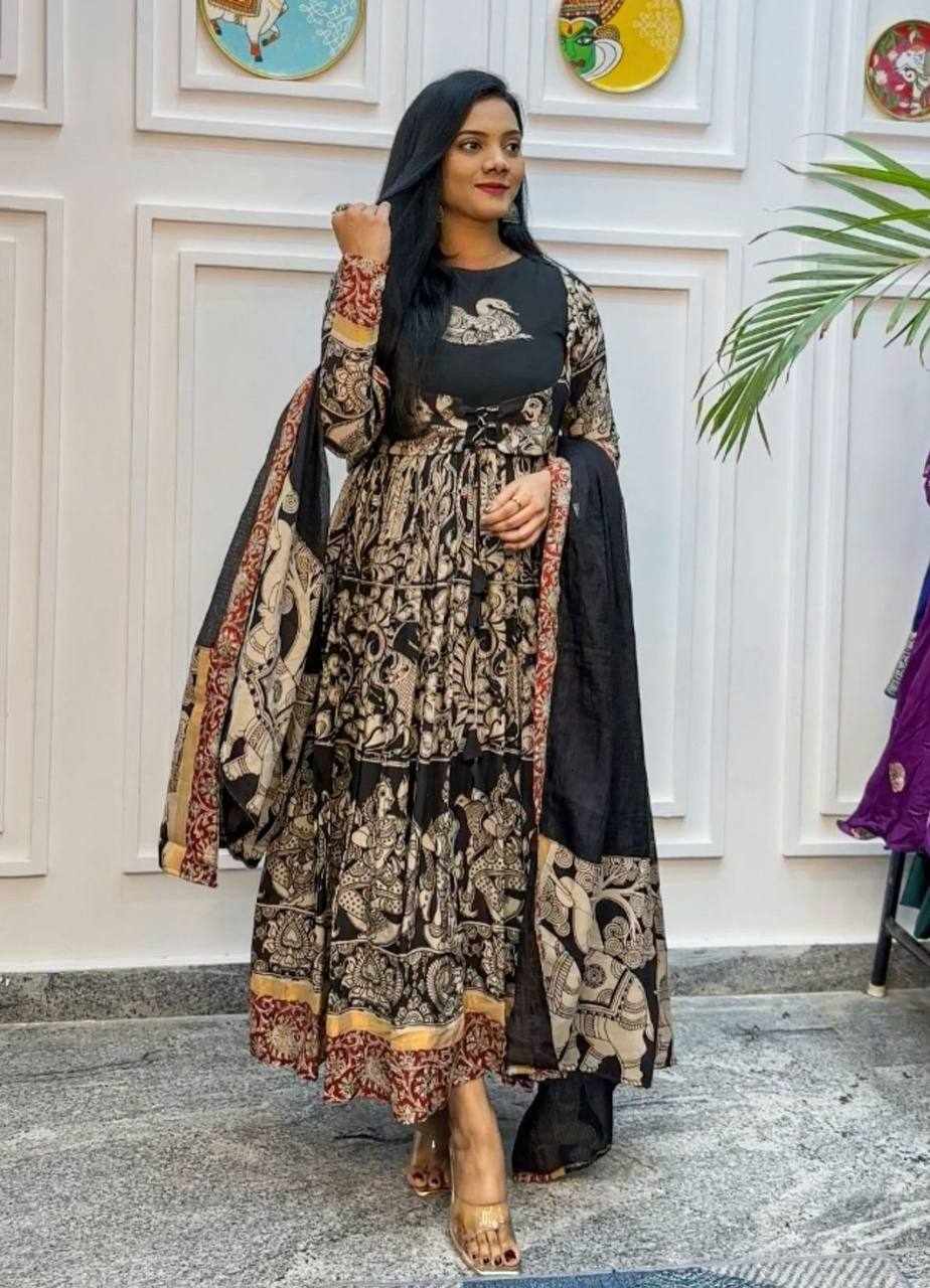 Pc 457 Riyon Cotton Kalamkari Print Gown
