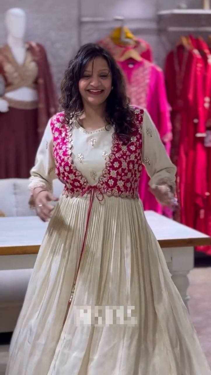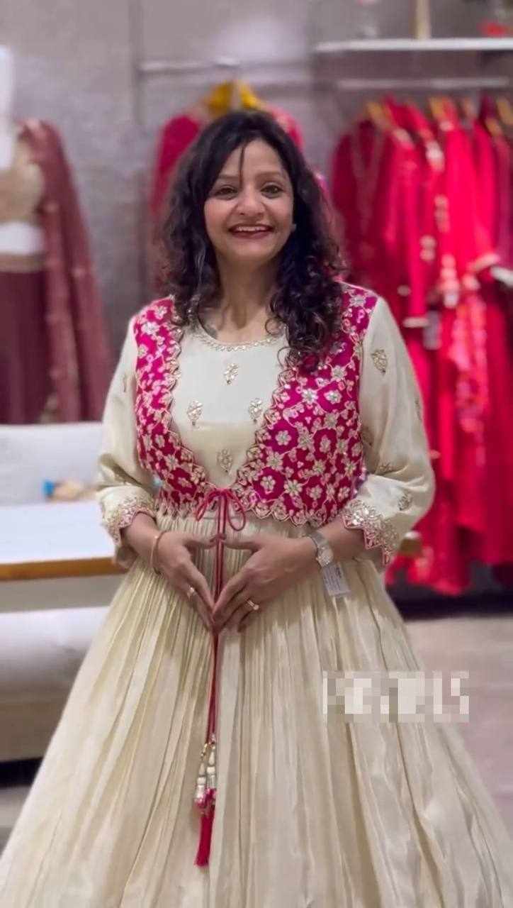 | Name : | Pc 464 Bandhej Gown With Attach Shrug |