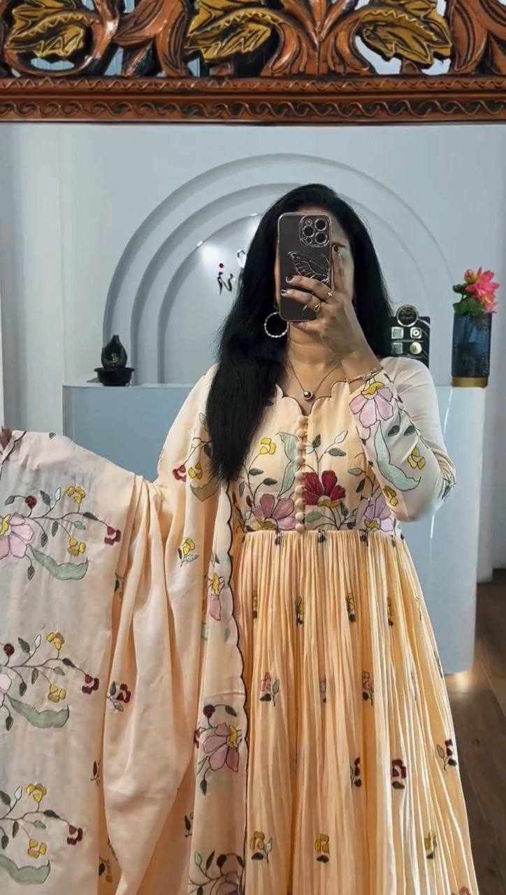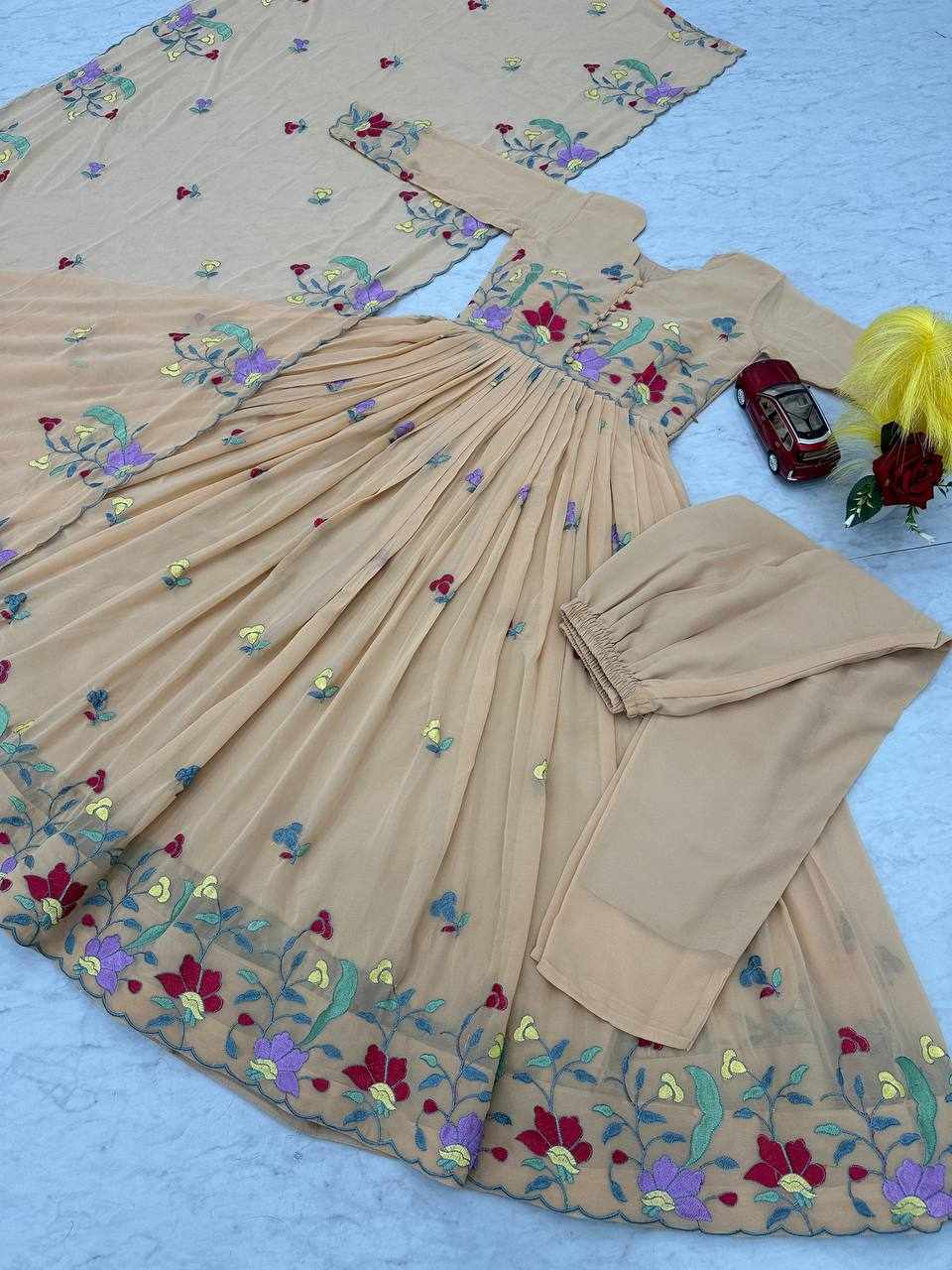 Pc 528 Cream Heavy Embroidery Thread Work Gown