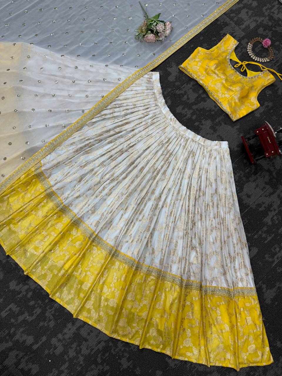 QRC 318 Jequrd Codeing with Sequnce Semi Stitch Lehengha