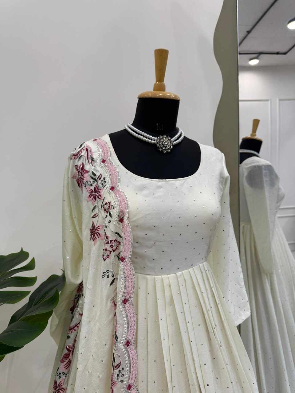 RTC 5873 Chinon silk thread with Sequnce Off White Readymade Dress