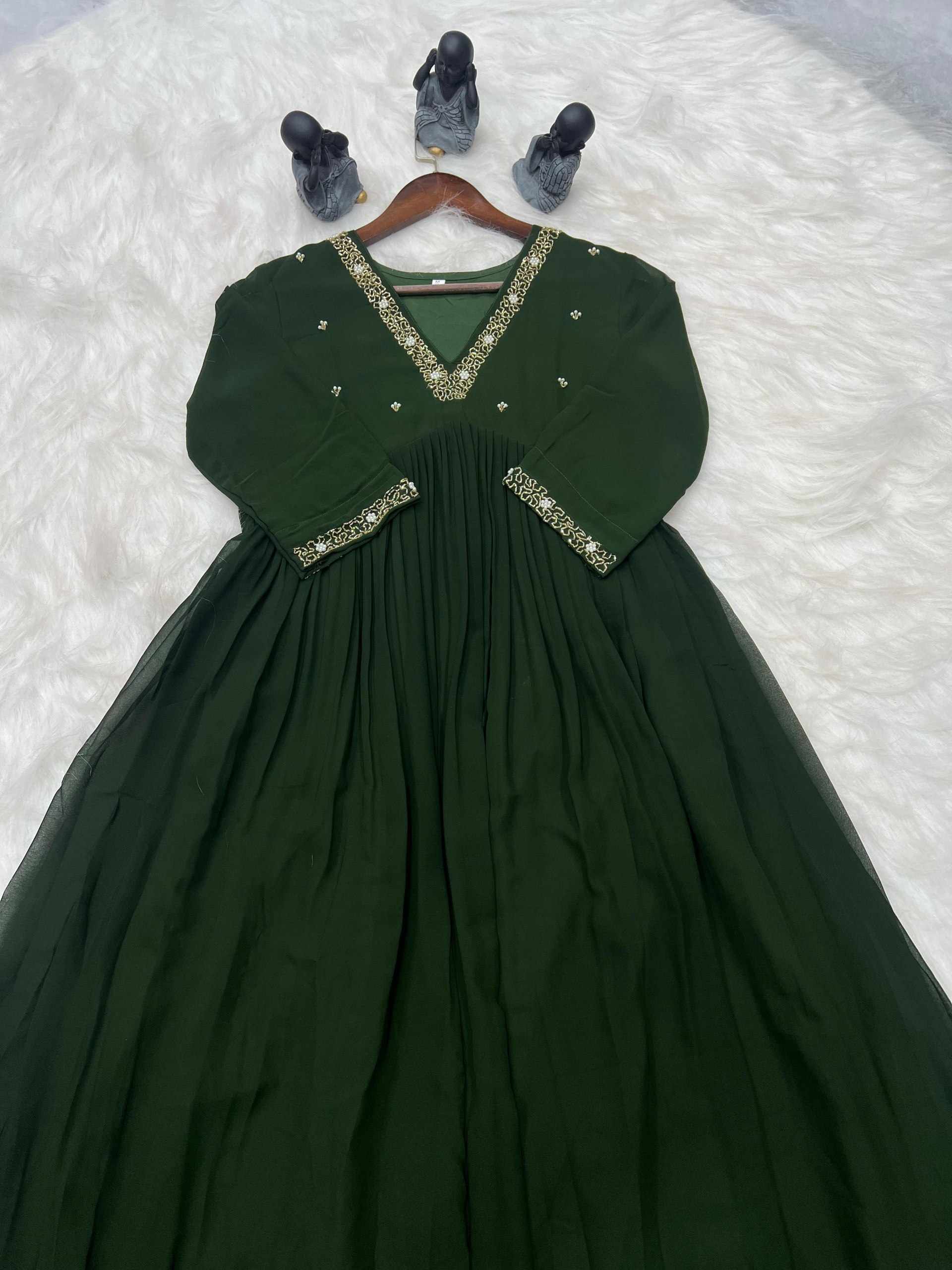 WM10 GREEN BLOOMING GEORGETTE HANDWORK KURTI