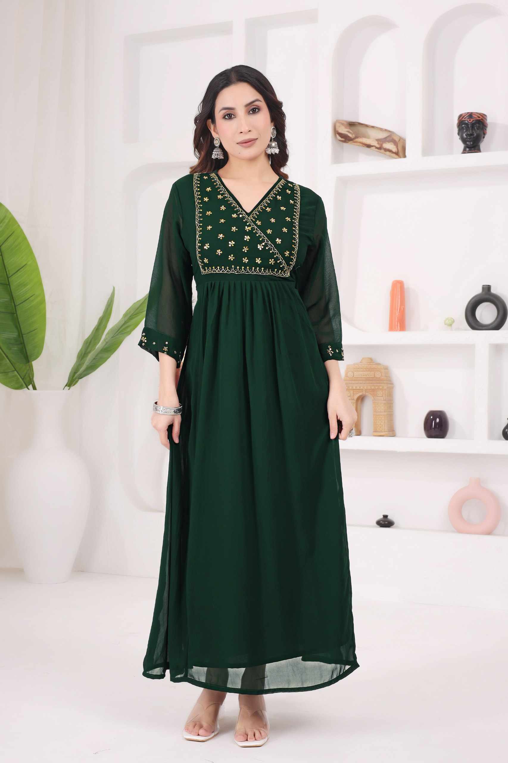 WM12 GREEN BLOOMING GEORGETTE BEAUTIFUL HANDWORK KURTI
